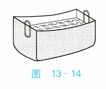 6. 纸锅烧水:在 1 个标准大气压下,取一张光滑的厚纸,做一个小纸锅(图 13 - 14)。向纸锅中装些水,再将纸锅放到火上加热。注意不要让火烧到水面以上的纸。过一会儿,水就会沸腾,而纸锅不会燃烧。想想,为什么纸锅不会燃烧?