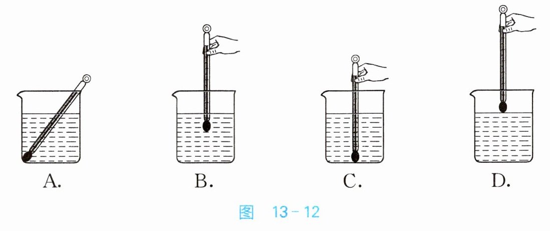 (1)小明观察到同学们测水温的操作方式如图 13 - 12 所示,你认为正确的是