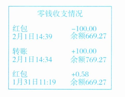 (7)某用户日常零钱收支情况如图所示,其中“-100.00”表示 (