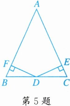 5. 已知:如图,在△ABC 中,D 是边 BC 上的点,$DF \perp AB$,$DE \perp AC$,垂足分别为 F,E,且$DF = DE$,$BF = CE$.