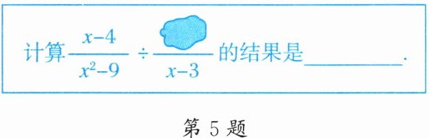 5. 如图,作业本上有这样一道填空题,其中有一部分被墨水污染了. 已知该题的计算结果是$\frac{1}{x + 3}$.