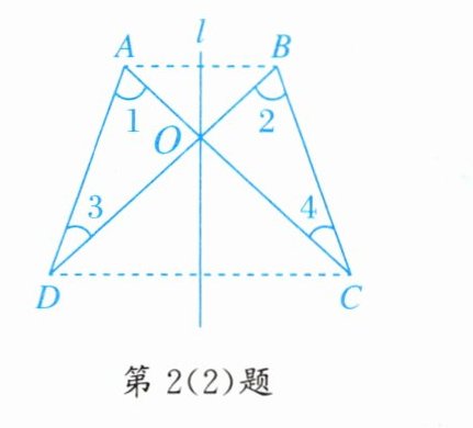 (2) 如图,$\triangle AOD$ 与 $\triangle BOC$ 关于直线 $l$ 对称. 下列结论中,正确的是