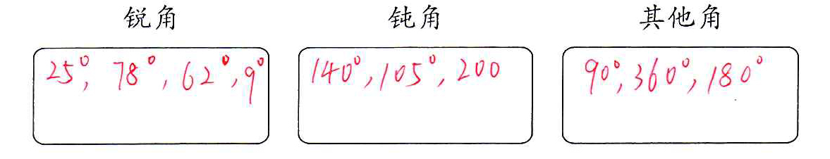 3. 按要求把下面各角填在合适的方框里。