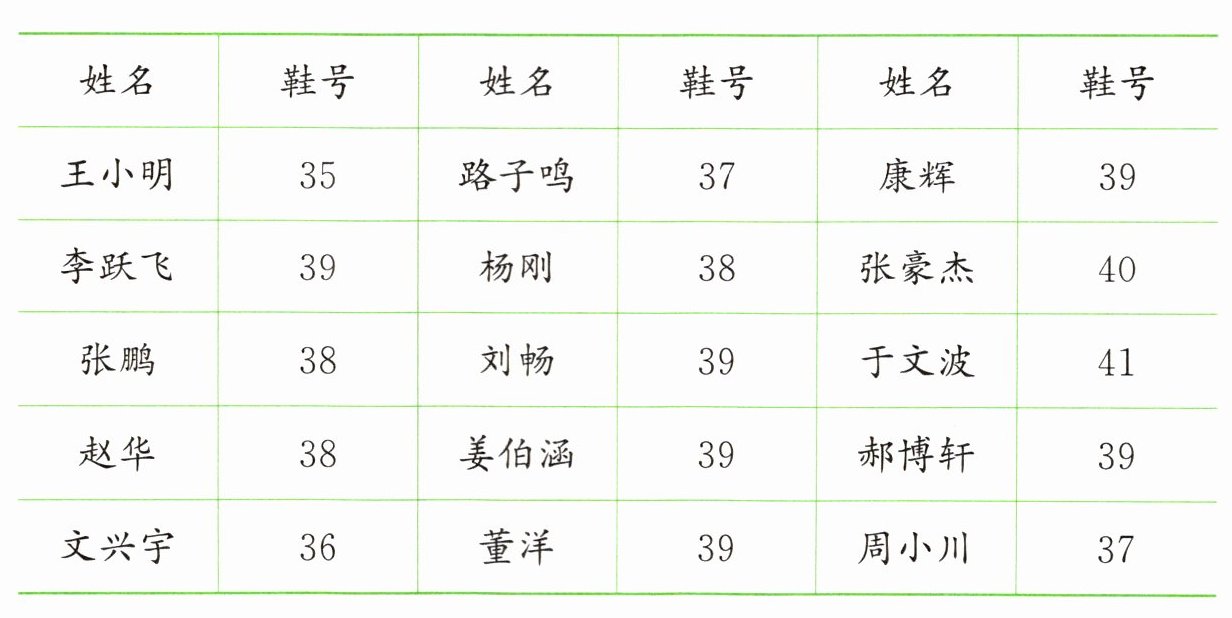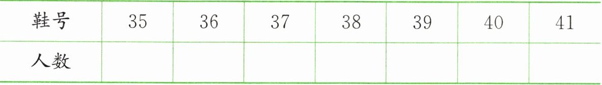 2. 四(1)班男同学所穿鞋子的号码统计如下表。