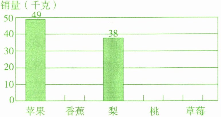 (1) (根据统计表数据,在统计图中香蕉对应位置画出高度为49的直条,桃对应位置画出高度为27的直条,草莓对应位置画出高度为17的直条,并标注数据)