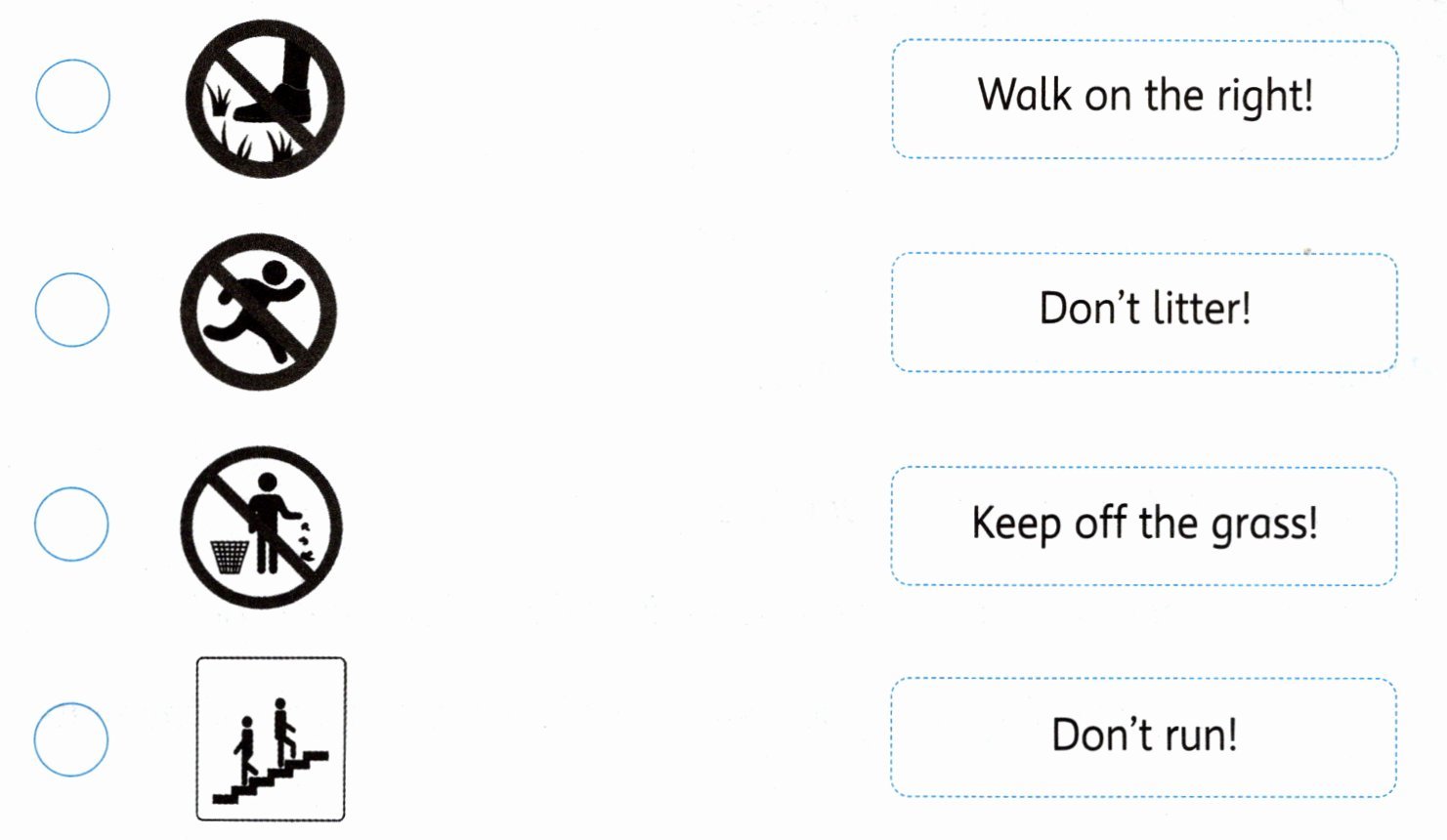 ■ A. Listen, number and match. 听录音,标号,然后将图片和对应的标语连线。