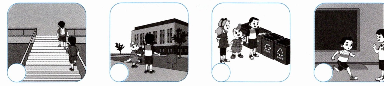 ■ B. Look and match. 看图,根据情境给图片匹配合适的句子。