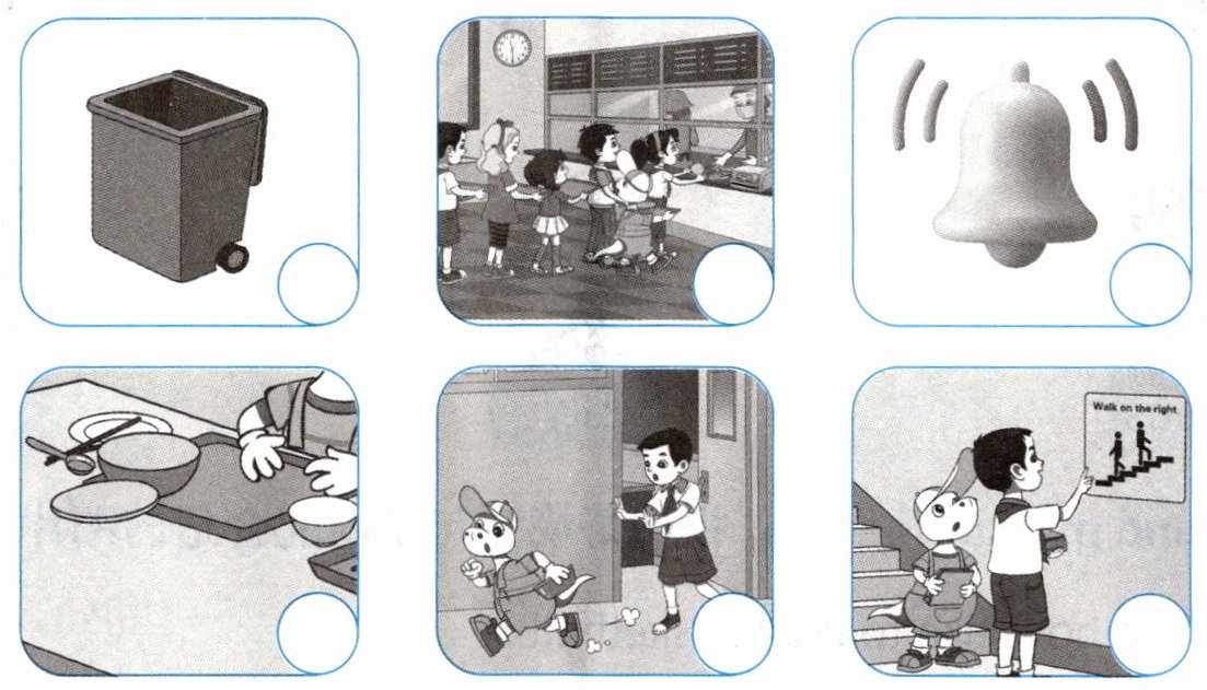 wait in line walk on the right eat in the library write in library books run in the classroom keep the gym clean
