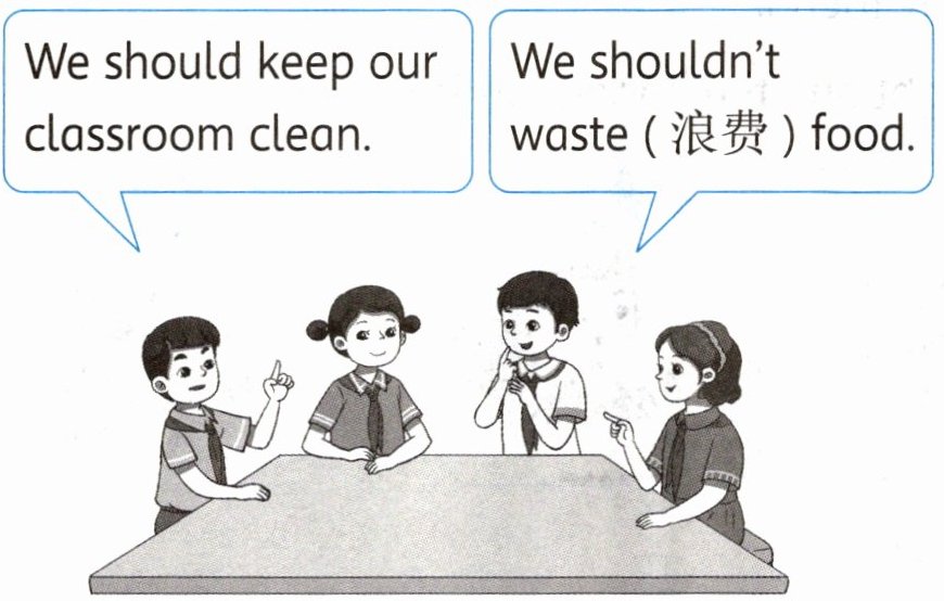 We shouldn't: 1. eat in the library 2. write in library books 3. run in the classroom