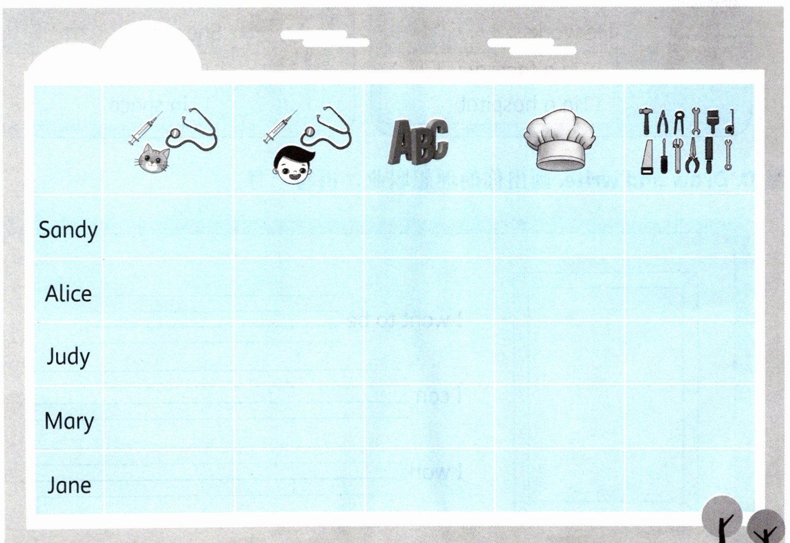 ■ B. Listen and tick. 根据所听内容在表格相应位置打钩。