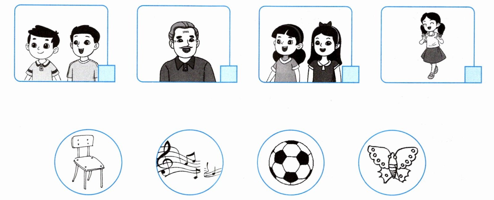 1. Listen, number and match. 听音,标号,连线。