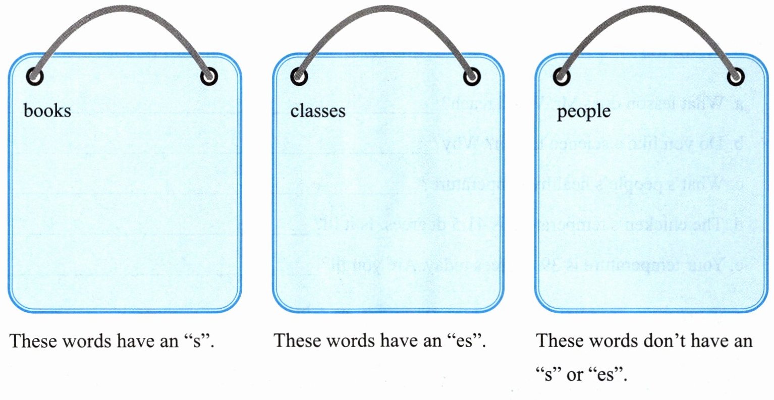 These words have an "s": books, flowers, windows, computers, tables, photos, chairs