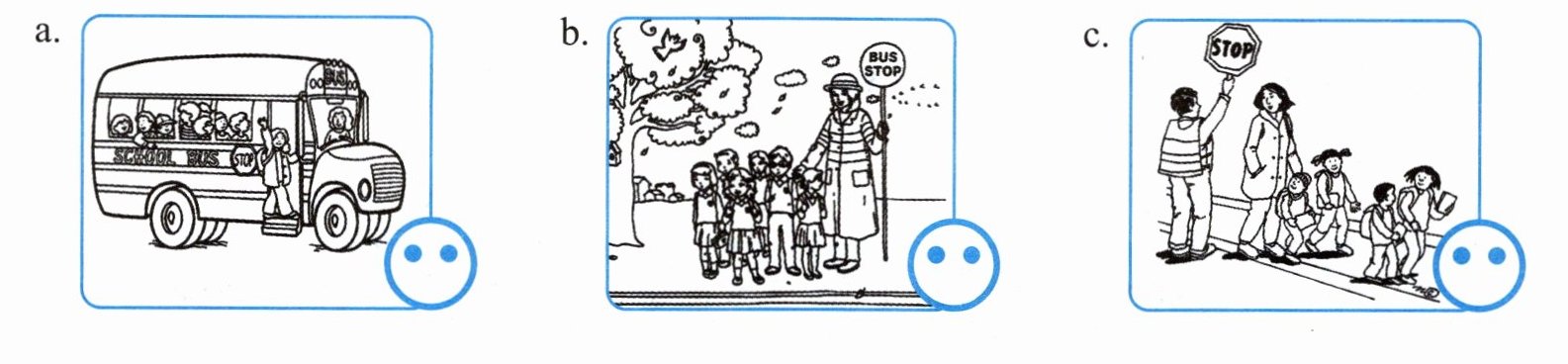 a.笑脸 b.笑脸 c.哭脸