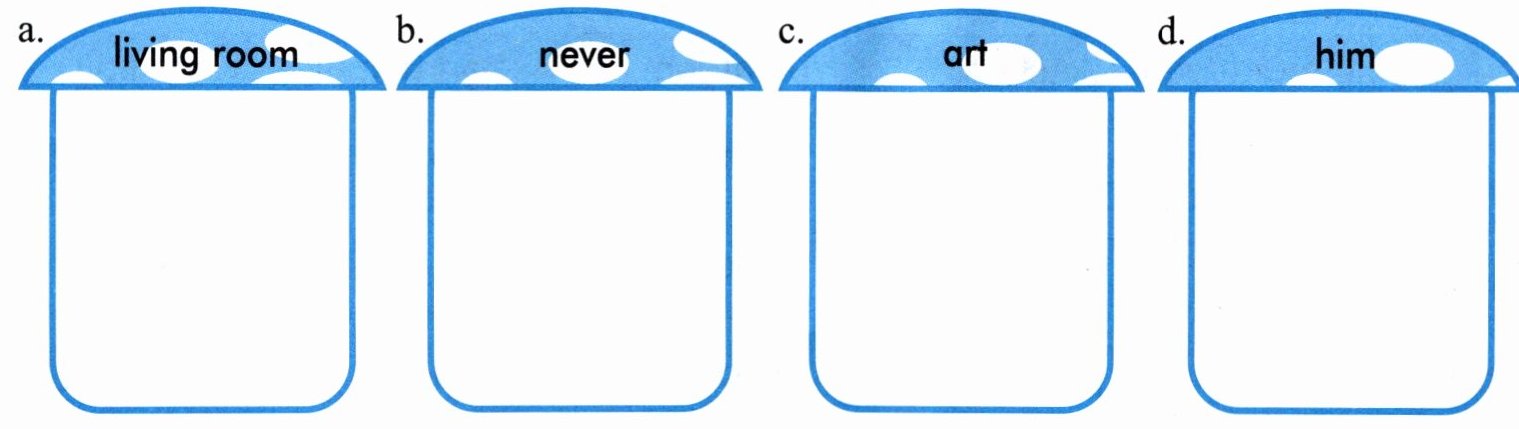 7. Classify the words and write them down. 把下列单词分类写在框中。