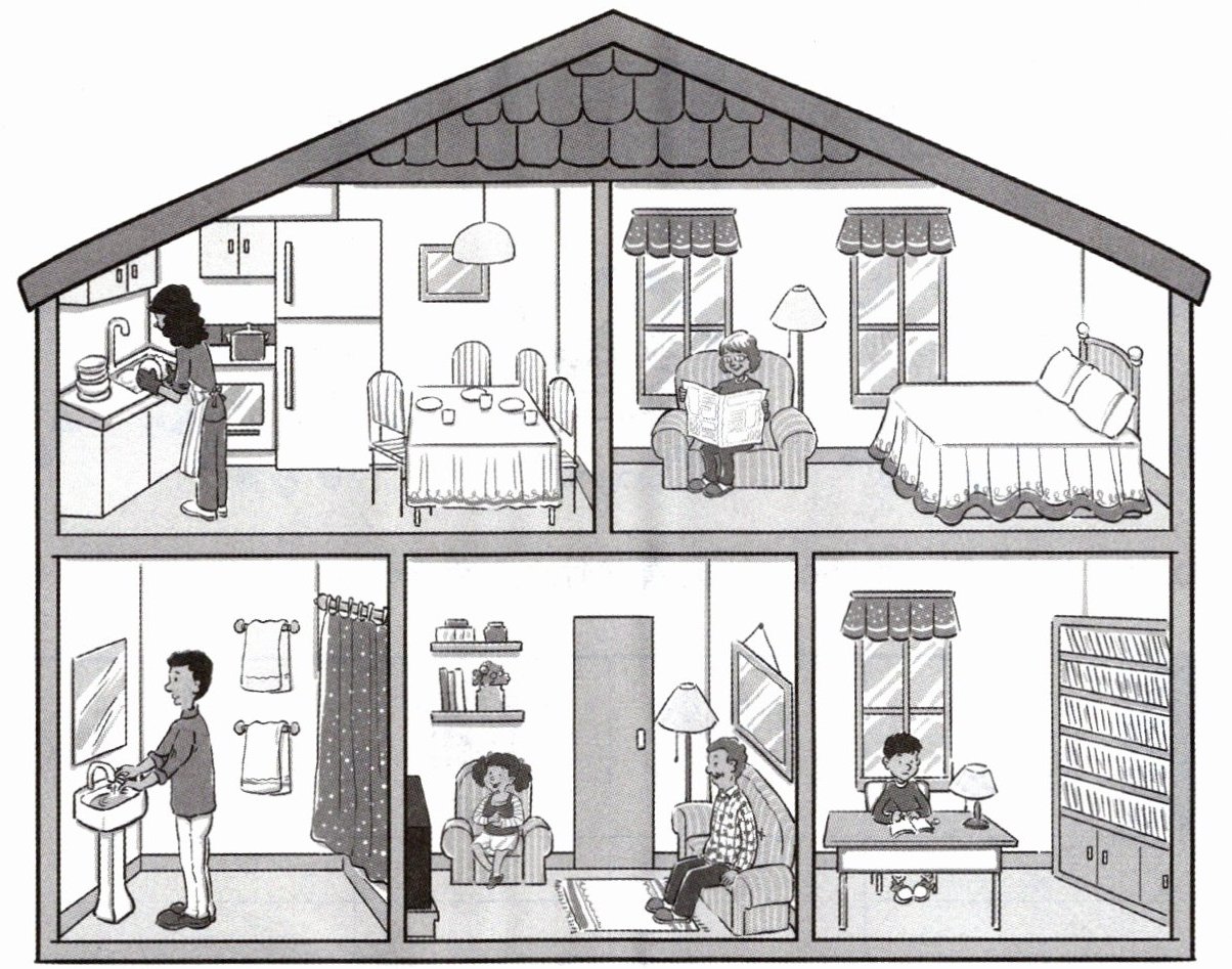 ) c. My father is washing the dishes in the kitchen.(