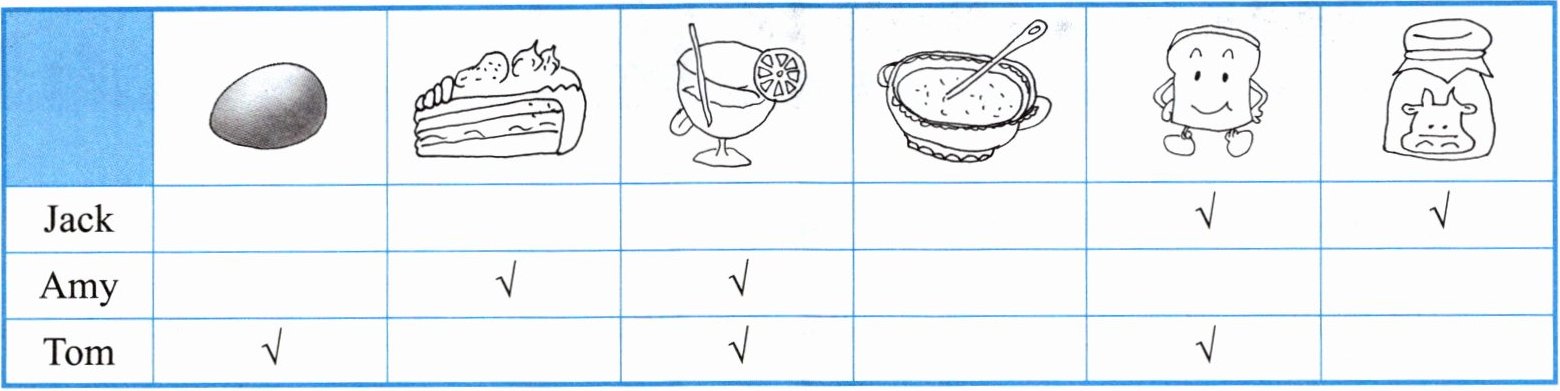 .在一些西方国家,人们早餐喜欢喝牛奶(milk)和果汁(juice),就餐时用刀(knife)和叉(fork)。他们的饮食习惯与我们一样吗?
