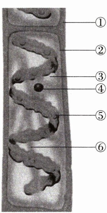 (1)细胞壁 细胞膜 液泡 细胞核 叶绿体 细胞质 (2)叶绿体 螺旋 (3)①、③、⑤