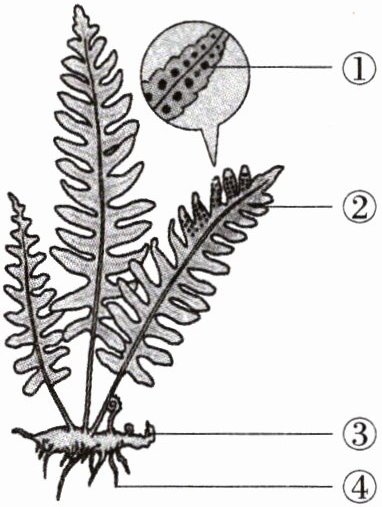 14. 肾蕨是国内外广泛种植的观赏蕨类,除园林应用外,肾蕨还是传统的中药材。下图是肾蕨形态示意图,据图回答下列问题。