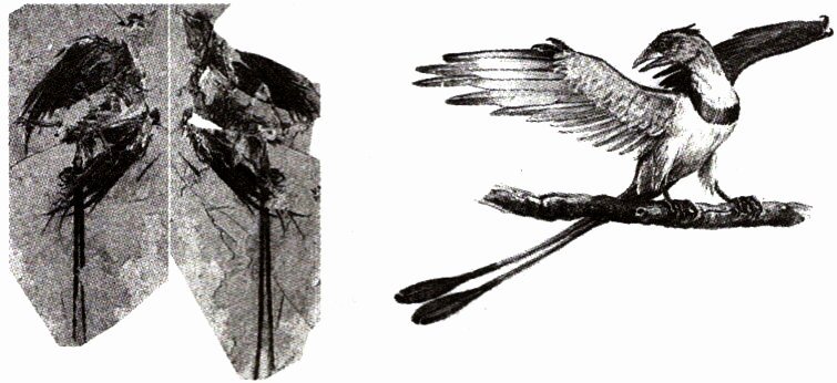 9. 2005—2006年,科学家在河北丰宁发现了属于恐龙时代的新鸟类化石,将其命名为郑氏始孔子鸟,以纪念我国著名鸟类学家郑光美教授。下图为郑氏始孔子鸟的化石和复原图,判断它属于鸟类的原因不包括(