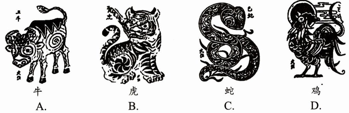 4. (2024·河北)河北武强木版年画是国家级非物质文化遗产。下列年画作品表示的四种动物中,体温不恒定的是(