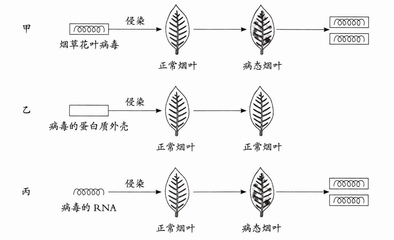 7. 下图为烟草花叶病毒侵染烟草实验示意图,分析回答下列问题。