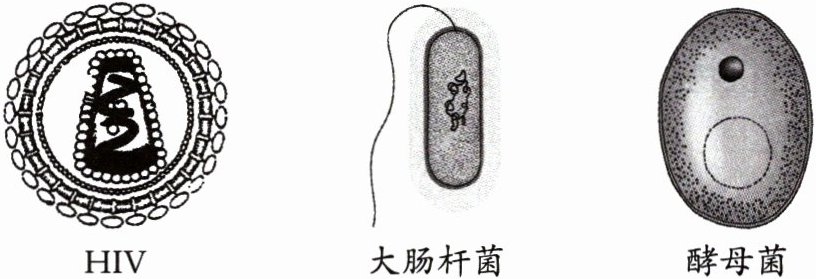 A.三者中体积大小顺序是:酵母菌>大肠杆菌>HIV