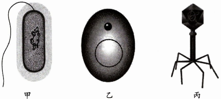 甲和乙可归为一类。甲代表细菌,乙代表真菌,它们具有细胞结构。丙代表病毒,不具有细胞结构(答案合理即可)