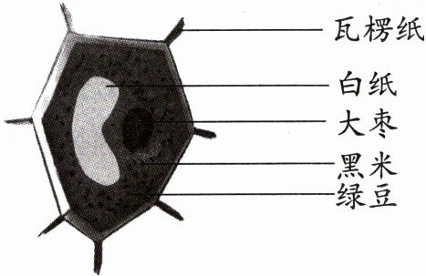 4. 如图是某同学制作的植物细胞结构模型,其中的瓦楞纸和大枣分别模拟的是(