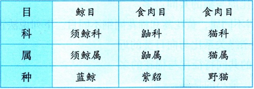 1. 下表是蓝鲸、紫貂和野猫三种哺乳动物的分类,具有较近亲缘关系的两种动物是(