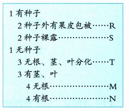 3. 科研人员在珠穆朗玛峰国家级自然保护区发现了大面积的珍稀濒危裸子植物密叶红豆杉,右表是某同学根据五种植物 R、S、T、M、N 的特征制作的分类检索表。其中符合密叶红豆杉特征的是(