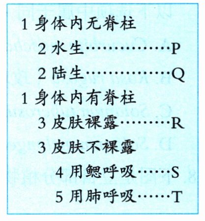 2. 通过查阅检索表,可以确定生物的分类地位,判断不同生物之间的亲缘关系。右表为动物检索表的一部分,字母 P、Q、R、S、T 分别表示不同的动物类群,下列说法正确的是(
