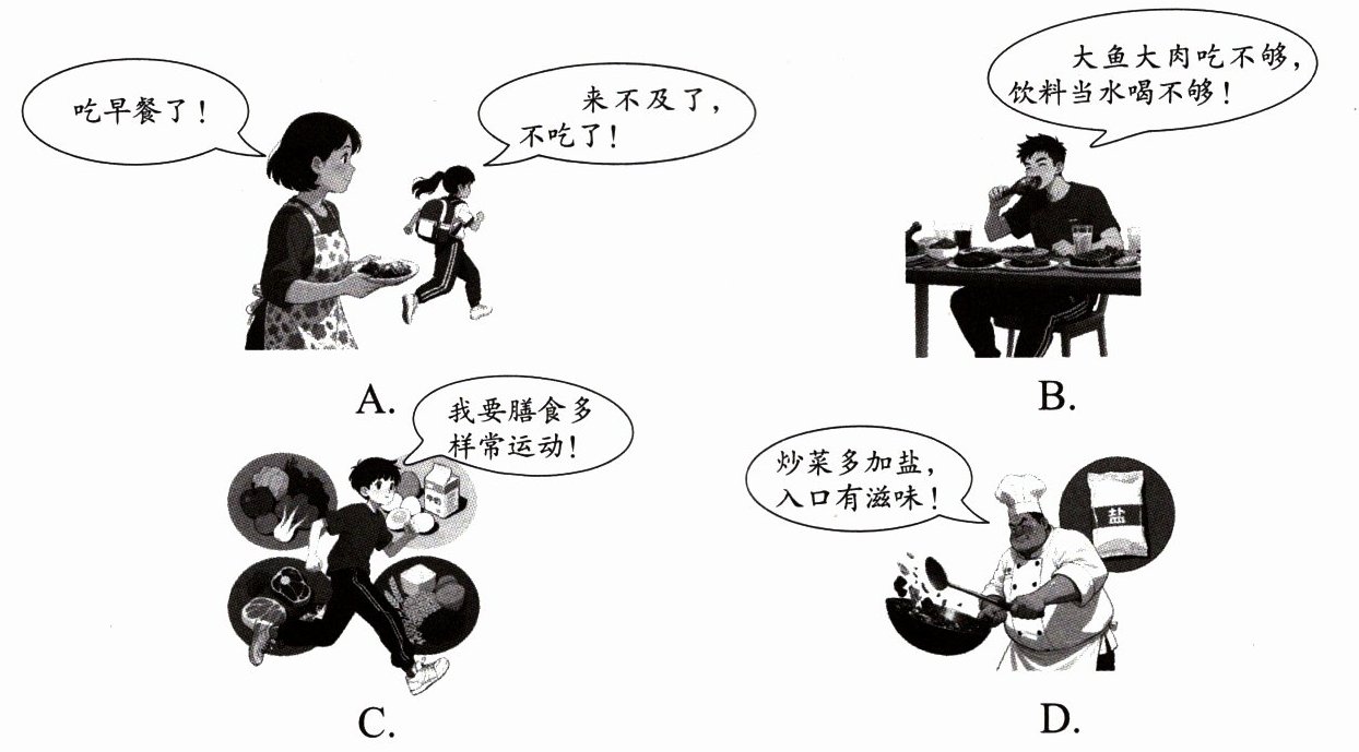 8. 我国倡导“三减三健”的健康生活方式,以下生活方式与之不符的是 (
