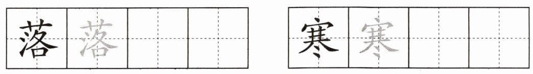 (按要求在田字格中描摹并书写“落”“寒”各两个,此处因格式限制无法展示具体书写,实际作答需规范书写)