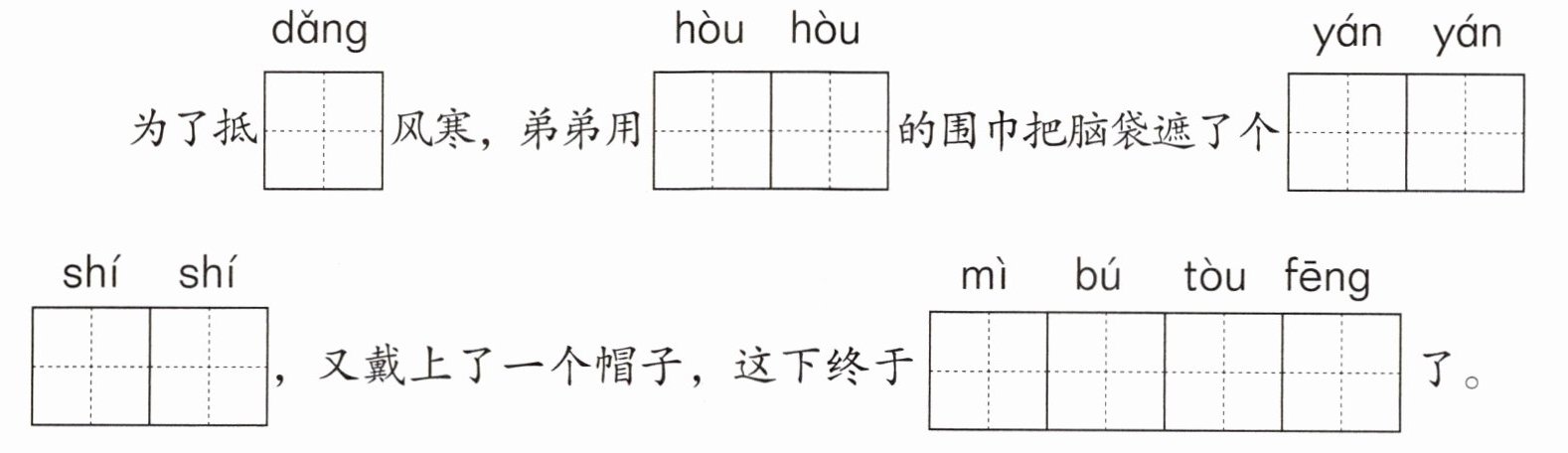 三、照样子,补全词语,并选择合适的词语补全句子。