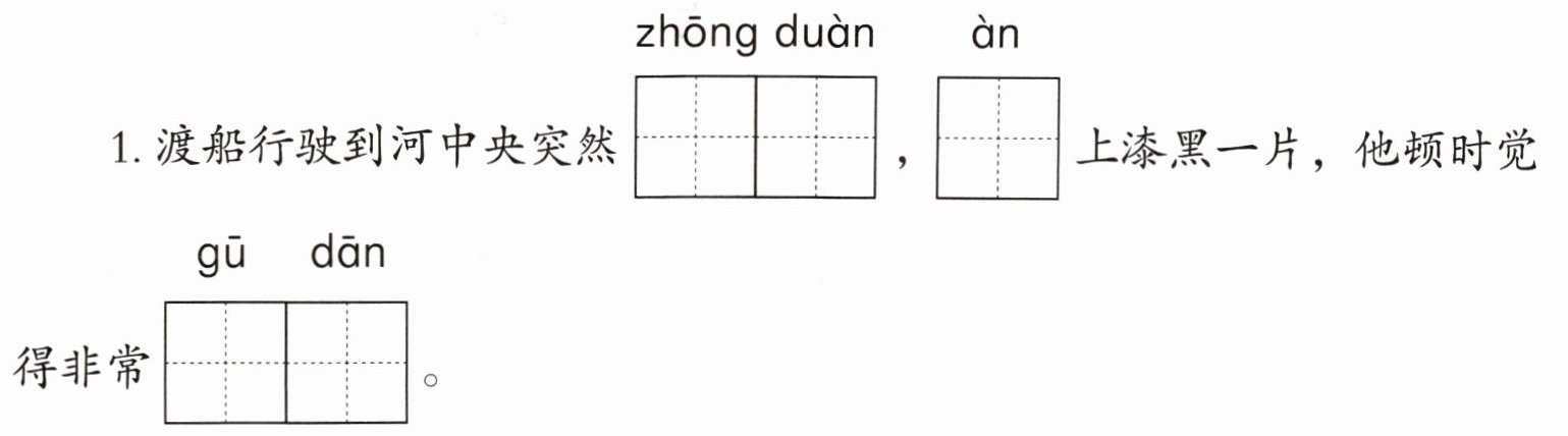 1. 中断 岸 孤单 2. 演奏 琴 美妙