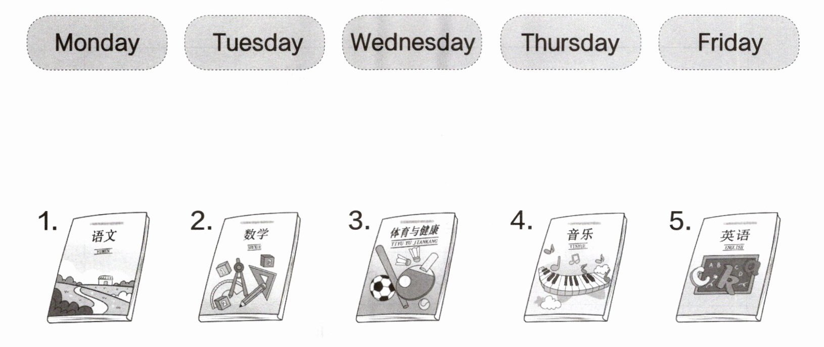 Ⅰ. Listen and number. (Tom和朋友们正在谈论他们一周中最喜欢的日子。请听录音,按照听到的顺序给下列图片标序号。)