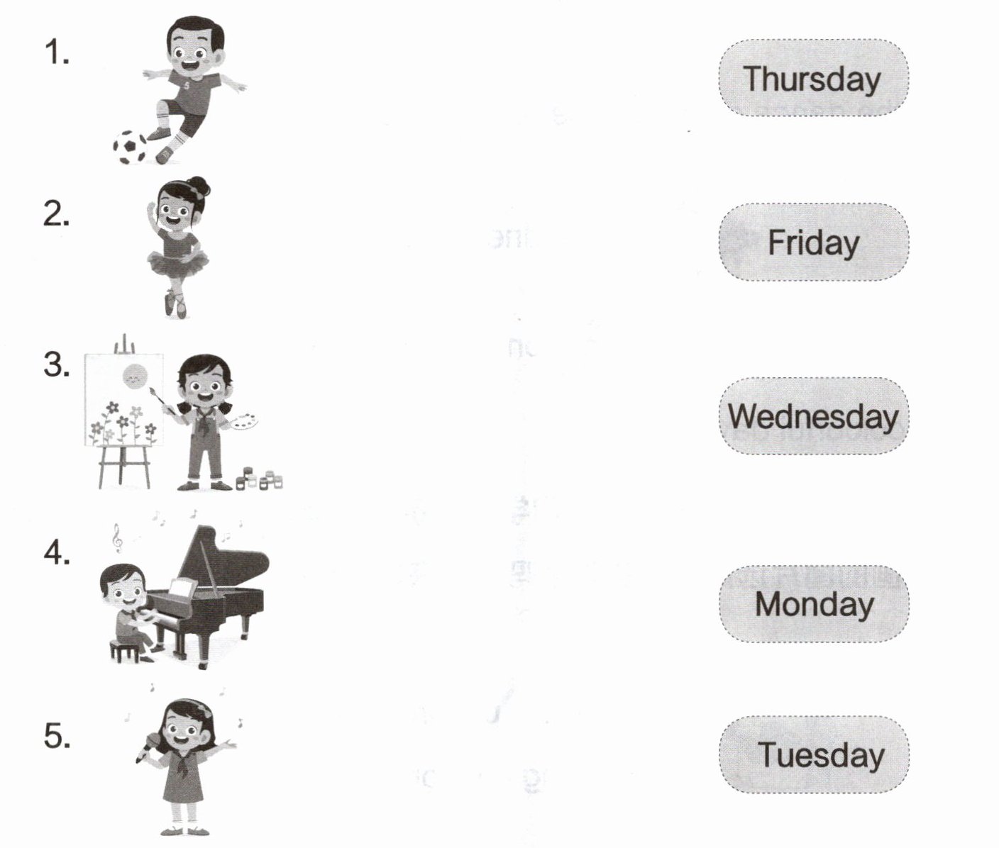 1—Thursday 2—Tuesday 3—Monday 4—Friday 5—Wednesday
