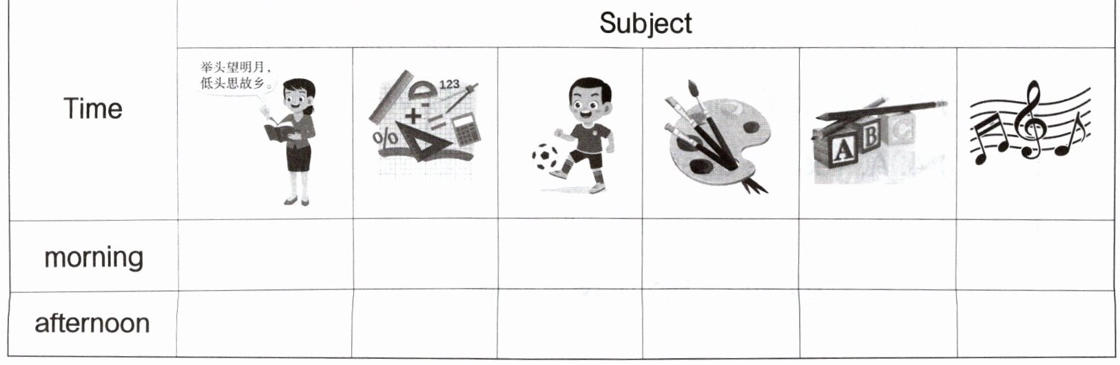 Tom: Yes. I have Chinese, maths, English and PE in the morning.