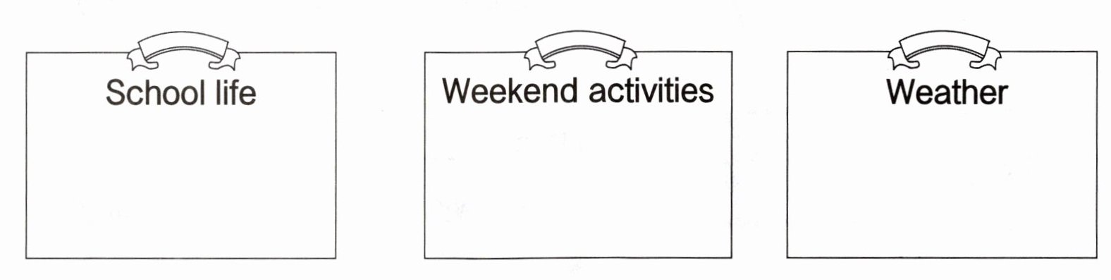 Ⅳ. Read and choose.(家长们正在观摩英语课堂,请你与大家一起,将下列单词或短语分类,将标号填在对应的方框内。)