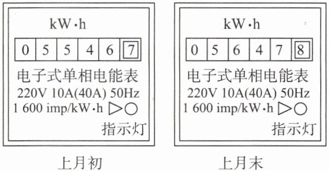 4. 如图是小英家上月初和上月末电能表的示数。结合表盘上的信息可知,下列说法正确的是(