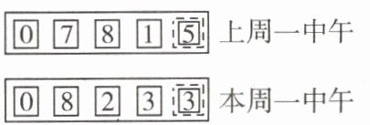 解析:电能表最后一位是小数位,单位是 kW·h;由图示电能表,读出上周一中午、本周一中午电能表的示数,本周一中午与上周一中午电能表示数之差是上周小明家上一周消耗的电能,求出一月消耗的电能,然后求出需要交纳的电费。