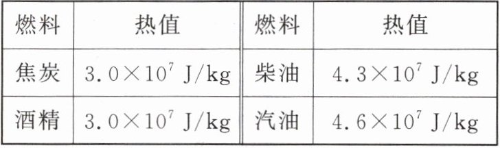 7. 我们把某种燃料完全燃烧放出的热量与其质量之比,叫作这种燃料的热值。下表中是一些燃料的热值。下列选项正确的是(