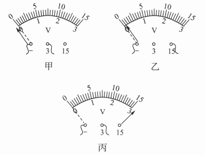 10. 有0~3 V和0~15 V两个测量范围的电压表,在某次测量中选择0~3 V测量范围接入电路,从0~15 V测量范围的刻度盘上发现指针正好指在7.5 V的刻度线上,则测得实际电压的大小为(
