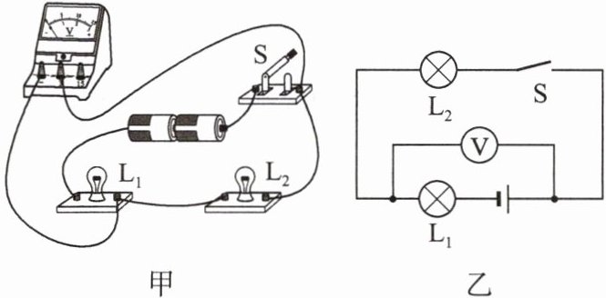 两端的电压;如图乙所示,当开关闭合时,电压表测量的是L₂
