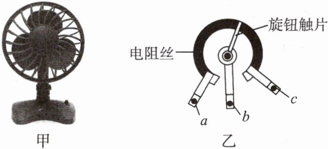 7. 图甲是一种常用的可调风速的小风扇,图乙为其用于调风速的电位器结构图,a、b、c是它的三个接线柱,a、c分别与弧形电阻丝的两端相连,b与旋钮触片相连。下列说法正确的是(