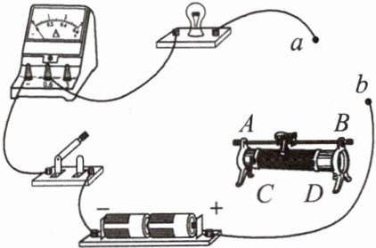 6. 在“练习使用滑动变阻器”的实验中,老师已经完成了部分电路的连接,如图所示,闭合开关后,将滑片向右滑动时,灯变亮,连入电路中ab间的接线柱应是(