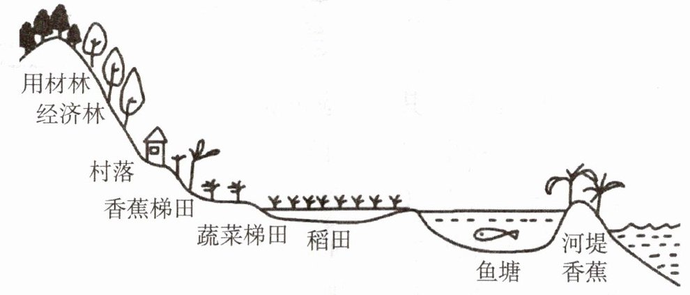 农业生产必须因地制宜,合理布局。读我国某地区农业生产剖面图,回答 3~5 题。