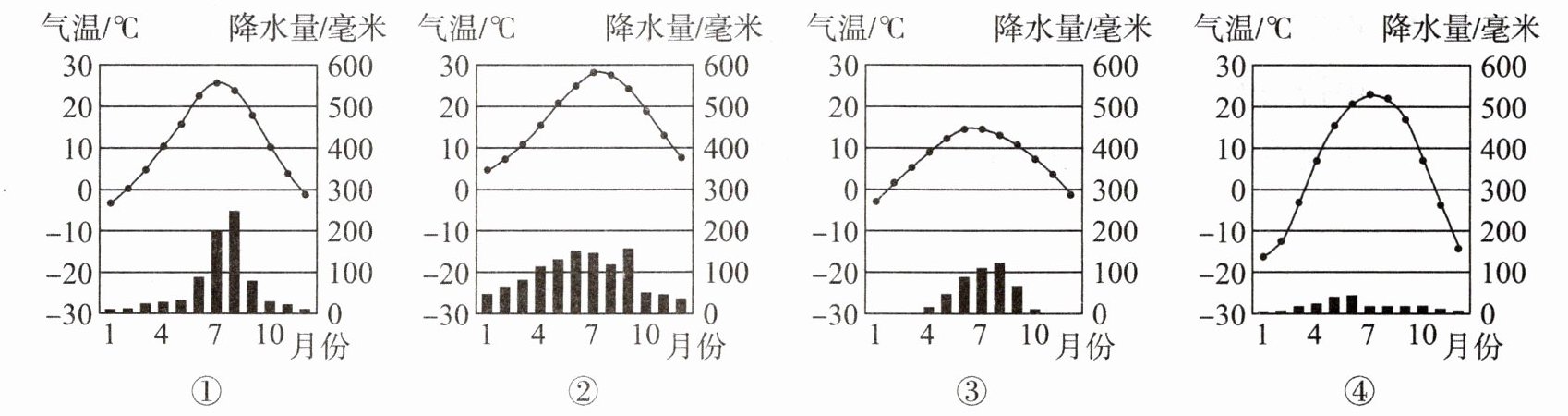 5. 水稻喜高温、多湿、短日照的环境。下面四地适合水稻生长的地区是(