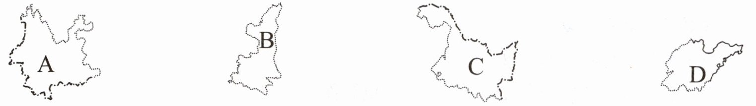 (3)A:云或滇 B:陕或秦 C:黑 D:鲁