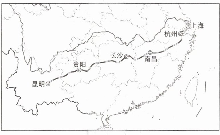 20. 读沪昆高铁线路示意图可知,沪昆高铁途经的省级行政区有(